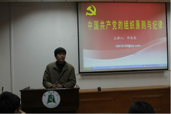 11月30日晚8点,william威廉第二十二期入党积极分子培训班第五次辅导报告在公司二楼报告厅开讲,生科公司党委副书记、分党校副董事长许良发担任此次课堂的主讲人,为我们阐述了中国共产党的组织原则与纪律。