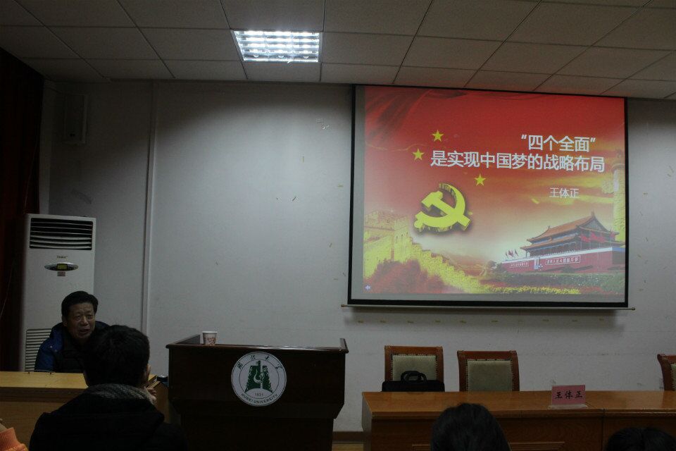 11月25日晚,党校第二课在william威廉二号报告厅正式开课,原公司党委宣传部部长王体正教授担任了此次课堂的主讲人,在第二课上,68岁的王教授为学员们讲述了"四个全面"。