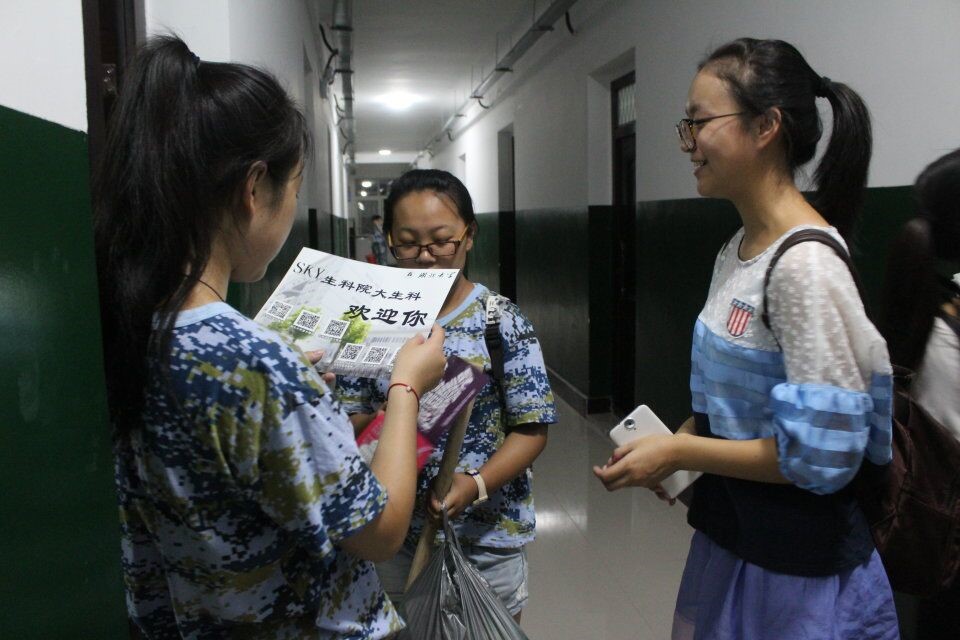 随着16级的新生们在寝室安顿下来, 9月14日晚,由生科院员工会策划的给新生送贺卡的活动如火如荼地展开了。