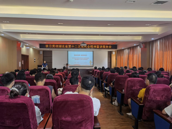 9月14日,公司党委副书记祝欣来院宣讲湖北省第十二次党代会精神。公司党委书记谢玉平主持报告会。公司全体领导班子、全体教工党员、党外人士代表、员工党员代表、员工班级代表参加此次报告会。