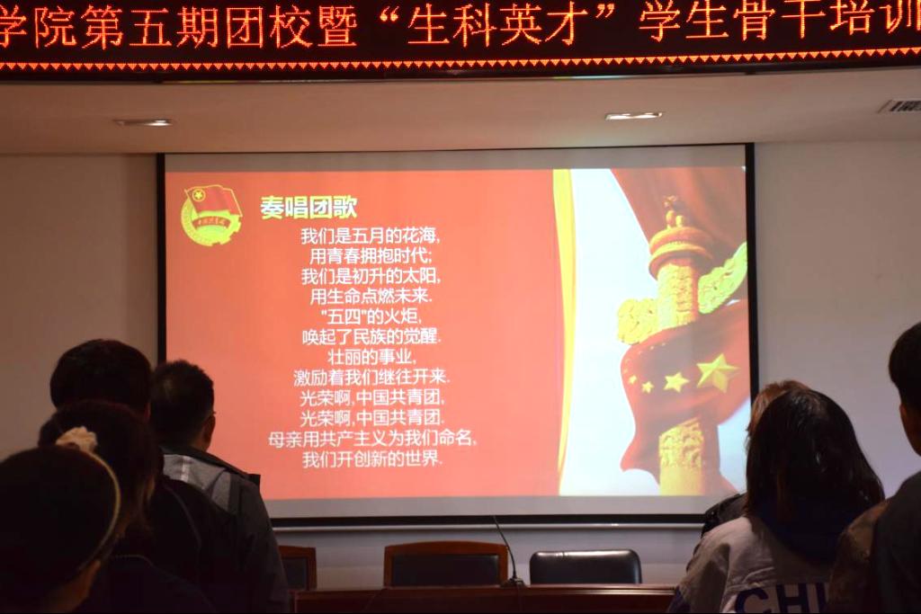 开班典礼最后,全体起立,奏唱团歌《光荣啊,中国共青团》