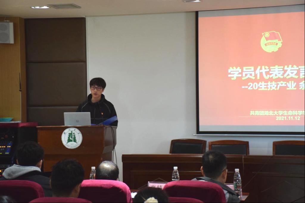 学员代表21级研究生吴宁宁同学和20生技产业俞鸿翔同学发言,表达自己对能加入团校学习的自豪与思想觉悟,从思想上、行动上践行团员标准,履行团员义务,把自己培养成符合时代要求的全方位多向发展高素质人才。