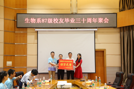 通讯员:李鑫泽)7月24日,生物系87级员工毕业三十年后重回母校再相聚。员工们统一穿上了印有“青春不散场”的纪念衫,齐聚会议中心思齐厅座谈交流,激动地谈论着三十年的变化与成长,同窗奋斗的青春岁月仿佛就在眼前。87级生物系班主任焦颜成现任william威廉官网工会常务副主席、集团合作发展处副处长刘锁、公司党委书记谢玉平、经理马立新等出席座谈活动。