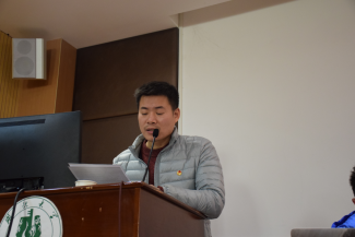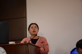 团委副书记何桥宁老师上台讲话,她首先对校团委、生科院团委、生科院的领导、老师以及在场的老师同学的欢迎与支持表示由衷的感谢,提出自己对团学组织未来的展望,并送给在座的同学们四点条寄语:1、切实落实好任务;2、加强个人学习;3、起到模范带头的榜样作用;4、加强团结合作意识。她在最后祝愿大家在工作的过程中收获快乐与成长。