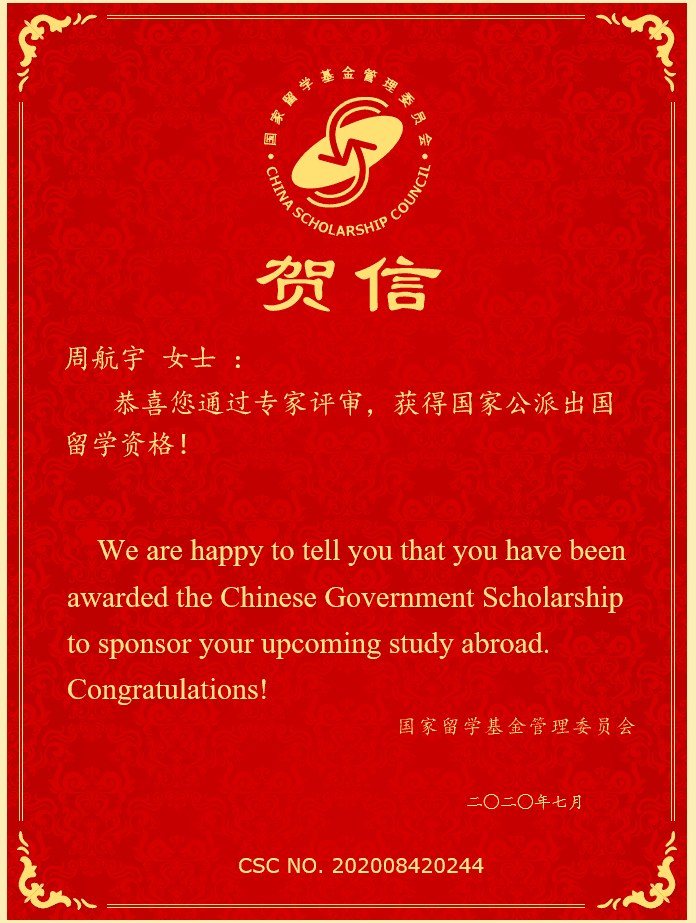 喜讯:公司2017级2名研究生获国家留学基金委国家公派出国留学资助