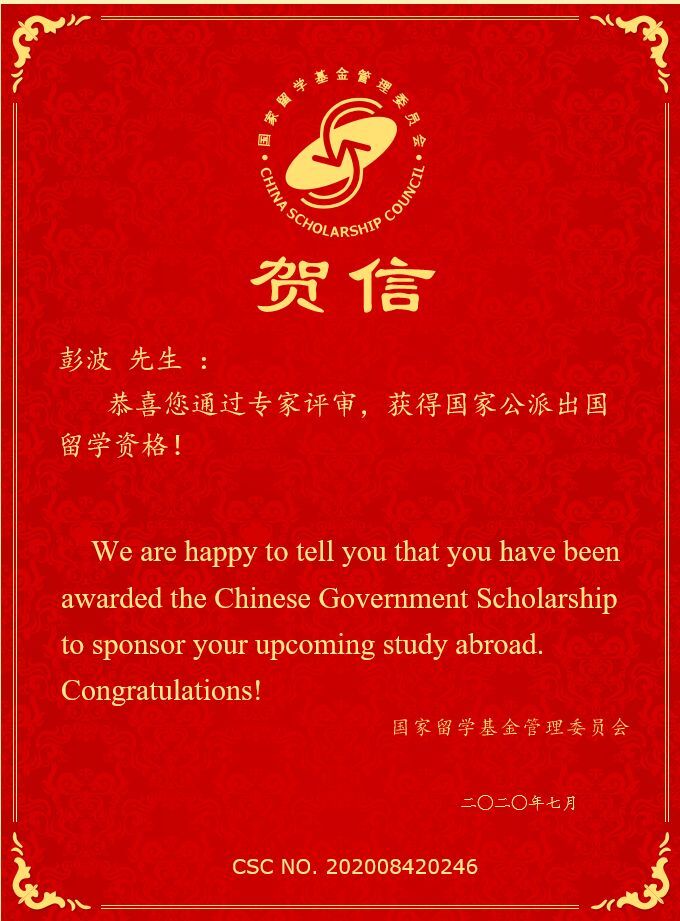 热烈祝贺公司2017级硕士研究生周航宇、彭波2名同学获国家留学基金委(CSC)国家公派出国留学资助赴荷兰格罗宁根大学攻读博士学位。