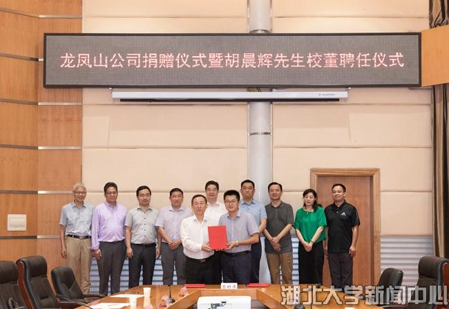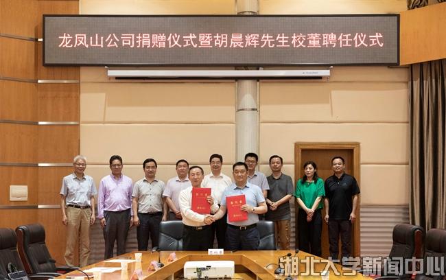 尚钢与胡俊华签订捐赠协议并赠送捐赠证书,向胡晨辉颁发校董聘书。