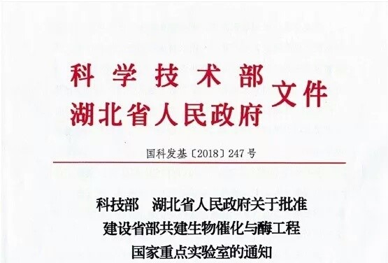 20181031日,国家科技部、湖北省人民政府联合下发《关于批准建设省部共建生物催化与酶工程国家重点实验室的通知》(国科发基〔2018247号),批准依托公司建设省部共建生物催化与酶工程国家重点实验室。