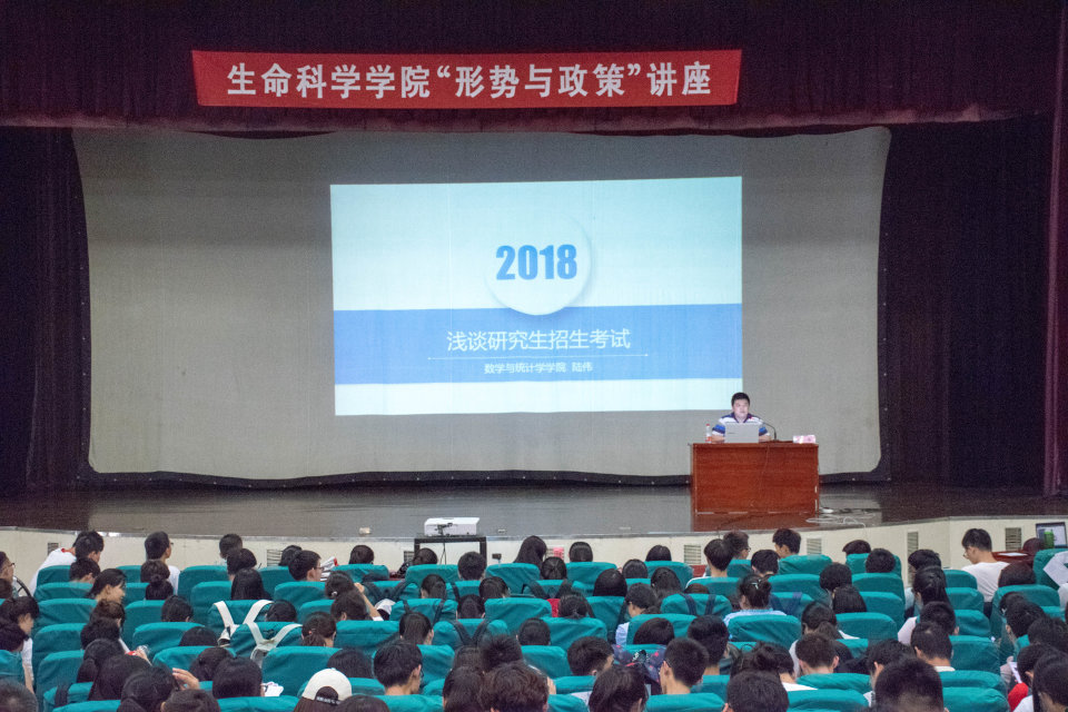 下午两点,第三场讲座由陆伟老师以“当下老员工考验状况数据分析”为题向同学们详细介绍了研究生招生制度的改革与变迁和基于生命科学领域考研的学科目录,最后,他也给同学们提出了一些对考研学子的建议。
