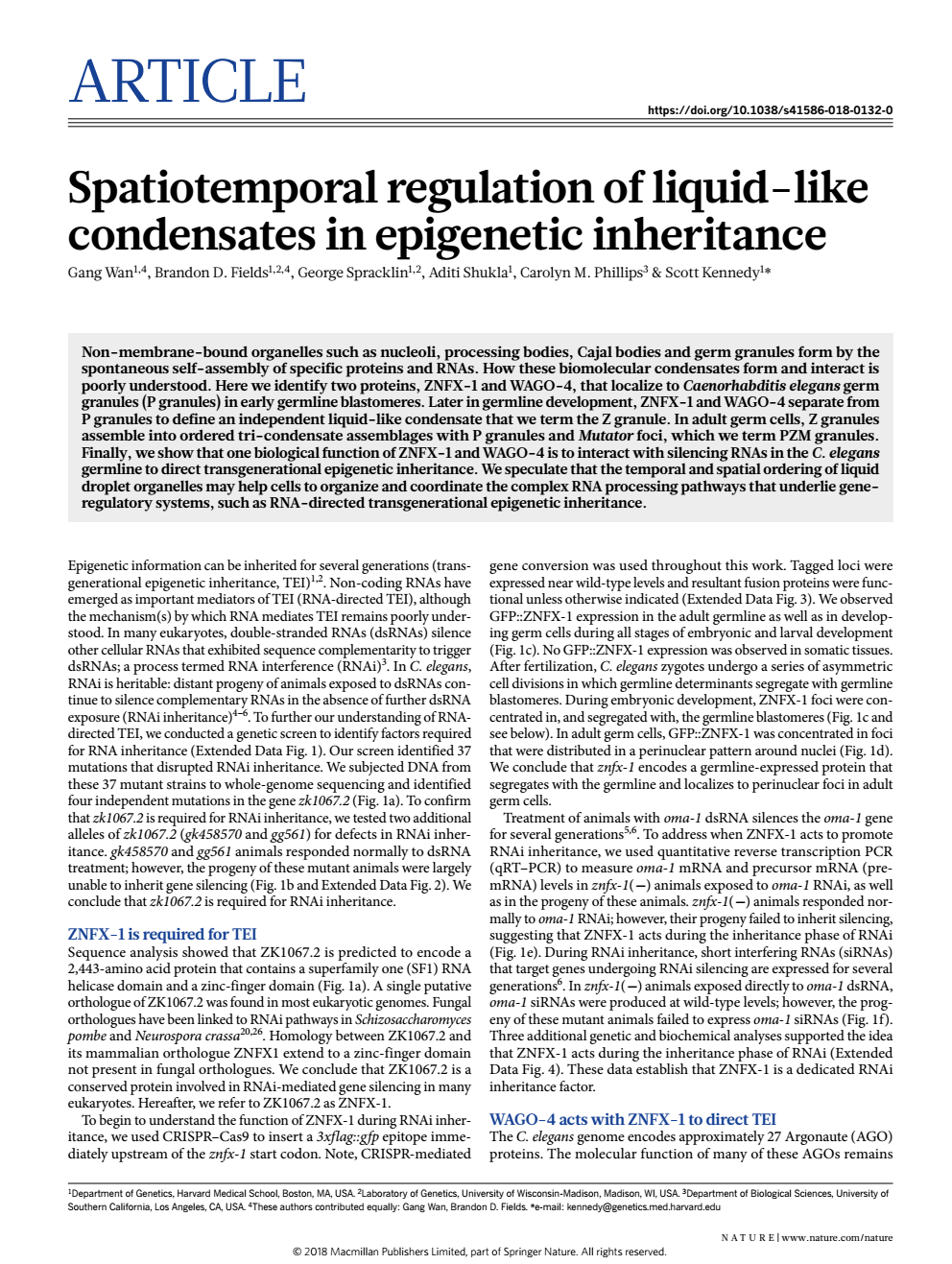 日前,william威廉2005级硕士研究生员工万刚博士在Nature杂志发表题为“Spatiotemporal regulation of liquid-like condensates in epigenetic inheritance”的长篇研究性文章(Article)。Nature是世界上最早的国际性科技期刊,自从1869年创刊以来,始终如一地报道和评论全球科技领域里最重要的突破,影响因子为40.137