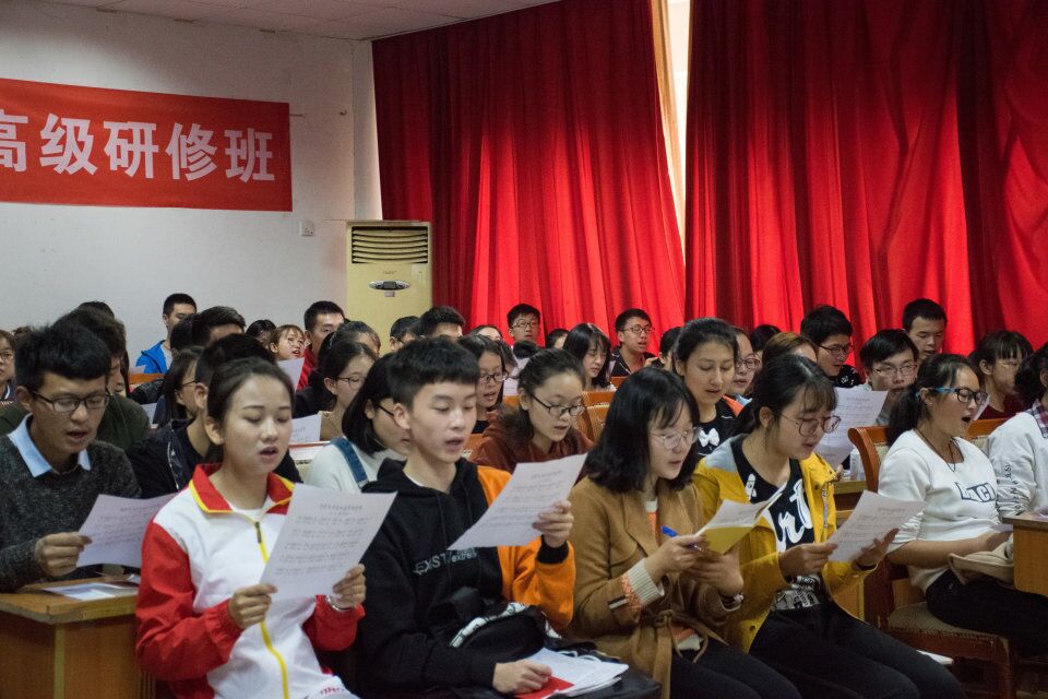 活动一开始,全体分党校学员在老师郑玉美的指挥下,合唱了《歌唱祖国》。作为主持人的骆美玲表示:“我们青年应该把红歌唱的更嘹亮、更久远”。随后,她歌唱了《跟着共产党走》。她从实现强军梦、努力学习贯彻习近平主席的治党方略、维护习近平总书记的核心领导地位、为实现一带一路伟大战略目标奋斗、全面准确学习领会党的十九大精神、深刻领会党的十九大主题五个方面讲述了新一代入党积极分子应做之事。