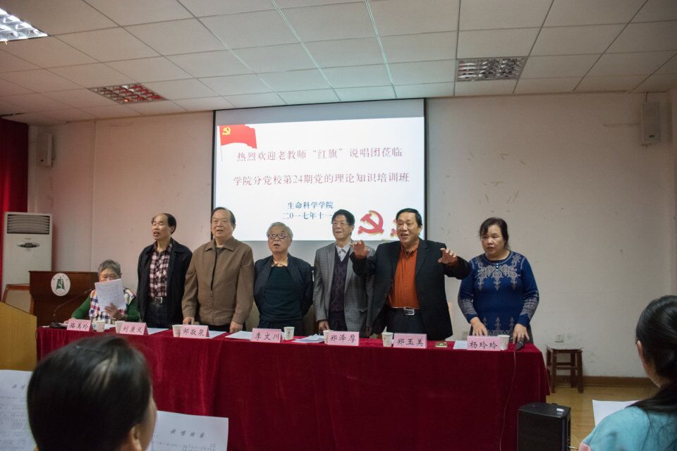 118日下午四点,公司分党校第二十四期党的理论知识培训班迎来了关心下一代工作委员会的骆美玲、刘康义、邹敬泉、李文川、郑泽厚、郑玉美、杨玲玲七位“红旗”说唱团的老师,他们中最年轻的也已有60岁高龄。