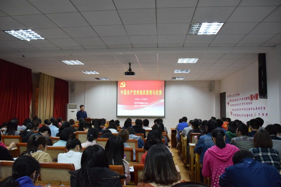 许良发副书记主要从民主集中制的形成与发展、什么是民主集中制、为什么要坚持党的民主集中制三方面讲述了中国共产党的组织原则,从党的纪律的内容、基本特征、怎样坚持党的纪律三个方面介绍党的纪律。通过“一根筷子和十根筷子的故事”,他告诉大家:“对于每一个入党积极分子来说,了解党的组织原则与纪律,做自觉遵守党的组织原则和纪律的模范,是最基本的要求之一。”随后,他又列举了景泰蓝、今年巡视通报出现的11个关键词等现实中的事例跟大家强调中国共产党的组织原则与纪律。