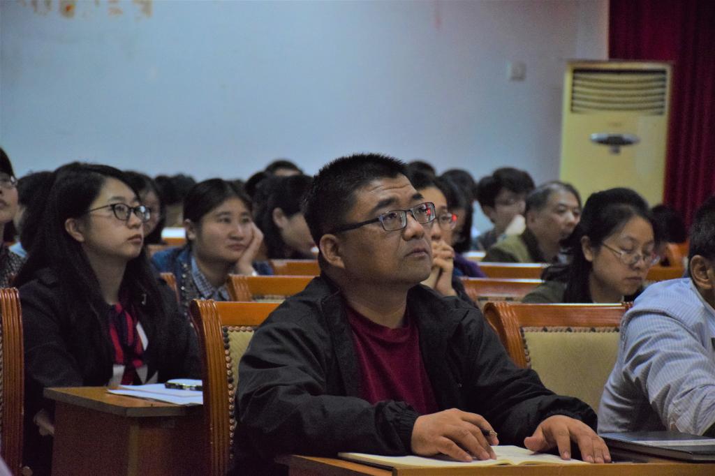 报告伊始,杨鲜兰教授结合十九大召开的实际背景,向大家复述了“不忘初心,牢记使命,高举中国特色社会主义伟大旗帜,决胜全面建成小康社会,夺取新时代中国特色社会主义伟大胜利,为实现中华民族伟大复兴的中国梦不懈奋斗”的十九大主题,并强调共产党人的初心和使命就是“为中国人民谋幸福,为中华民族谋复兴