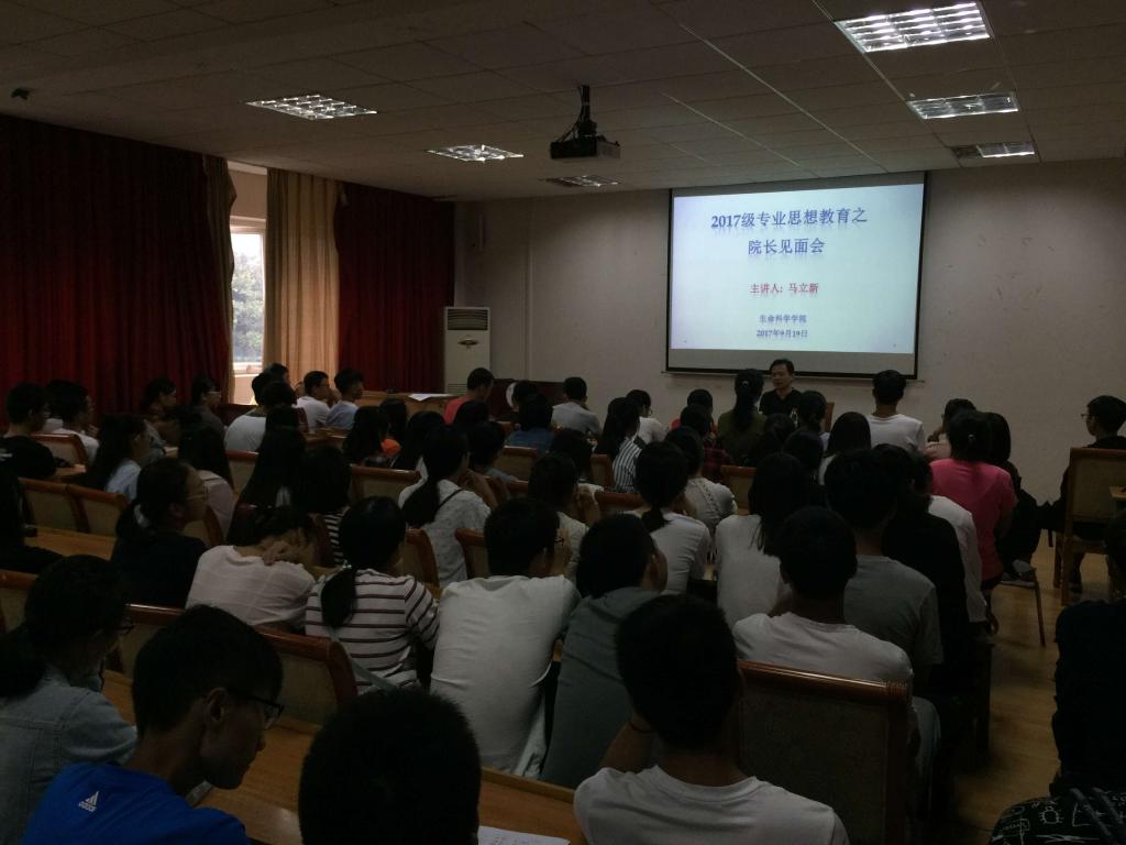 919日下午4点,2017级新生入学教育系列活动开展专业思想教育第一讲。马立新经理做客生科院二楼报告厅,主讲了“老马识途”马经理与新生见面会。