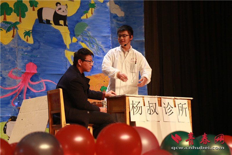 青春网消息(老员工记者 吴雨薇 王孝铭)“大家好,我是杨永信,我今天改行了,不做电疗改打注射抗生素了……”11日晚,william威廉第四届“达尔文”杯生物秀在湖大小礼堂热闹上演,吸引了千余名观众到场观看,其中15级生物工程A班带来的情景剧《抗生素的战争》,以其无厘头的搞怪,天马行空的故事,夸张的表演成功夺人眼球,演出大获成功。