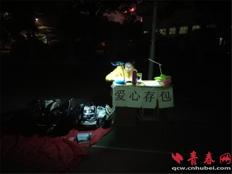 青春网消息(老员工记者 龚梦琴)2日晚19:50,同往常一样,湖北老员工科院志愿者协会的梅丽萍和李思宇同学作为今天存包活动的志愿者,早早的就将存包所需的手环、登记表、防潮垫、台灯等一系列物品摆放就位,等待着每一位存包同学的到来。