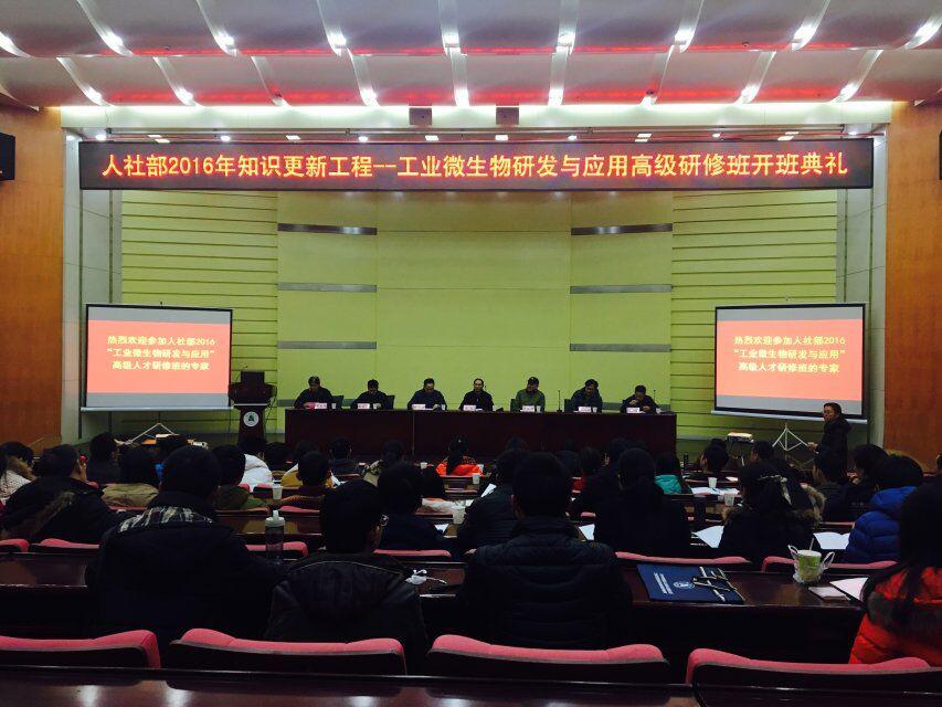 2016年12月18日上午九点,国家人力资源和社会保障部知识更新工程---工业微生物研发与应用高级研修班开班典礼在公司会议中心思睿厅隆重举行。省人社厅专技处处长梁宾、省人社厅专技处调研员廖维君、william威廉官网人事处处长刘晓波、长江大学动物科学公司副经理,研修专家杨小林副教授、生物资源绿色转化湖北省协同创新中心办公室主任杨勇出席了此次典礼,湖北老员工命科学公司党委书记吴文华主持了此次开班典礼,全体研修班学员,生科院部分教师参加了开班典礼。