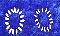 四倍体水稻(左)与二倍体水稻(右)米粒比较