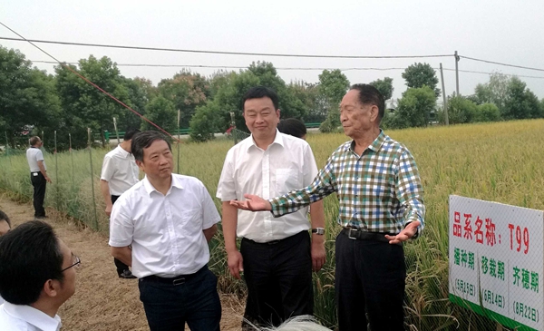 论坛期间,袁隆平院士专程到蔡得田教授团队在武汉黄陂的多倍体水稻基地视察。