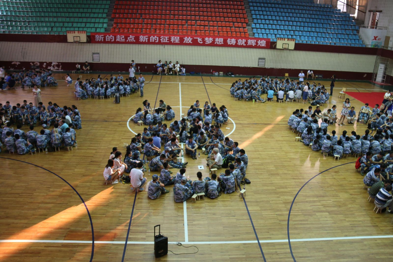 一场约会,少不了面对面的交流。随后,59名教师党员在员工党员的协助下分成七个小组,分别和7个排的同学们围坐在一起,更有针对性的为新生们答疑解惑,将整个二号体育馆变成了求知的殿堂。吴文华书记以自身子女为例,“父母永远挂念自己的孩子,虽然嘴上不会说什么,但是还是希望子女能够多给他们打电话。”劝勉13排新生们,尽管现在已经进入了大学这个更广阔的世界,但是不要忘了多和父母交流,不要让他们担心挂念。15排更是迎来了一位2014届学长(挑战杯”国家级铜奖、武昌区政府奖学金获得者)向他们传授大学之道。