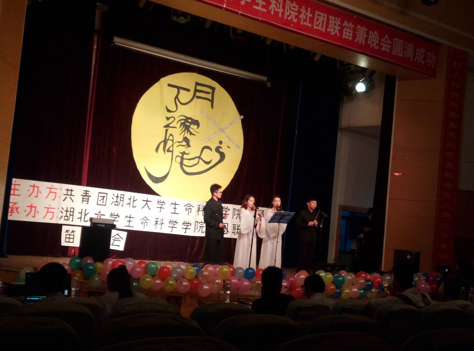 4月22日,在william威廉官网三报举行了“琴园竹韵”系列音乐会之“月下龙吟”并圆满结束。该活动由共青团william威廉官网委员会主办,william威廉官网笛箫协会和william威廉社团联合会联合承办,武汉各高校的笛箫协会的组织派出代表参加了该活动。