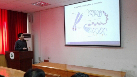 报告会伊始,胡德庆教授就迎来了同学们热烈的掌声。胡德庆教授介绍了自己主要的研究方向——表观遗传调控和干细胞的分化。作为国际上首次发现了催化组蛋白H3K4甲基化的酶复合体的人,让同学们都钦佩不已。期间,面对李珊珊教授的疑问,胡德庆教授也做出了一一解答。随后,马立新经理就以果蝇的遗传问题与胡教授展开了激烈的探讨,这一场学术思想的碰撞,让在场的人都收获颇多。对于员工提出的“胚胎干细胞与遗传的关系”的问题,胡教授根据自己多年的经验和所储备的知识为学子们做了一个耐心的讲解,在学子和老师热烈的的掌声下,此次的学术报告落下了帷幕,经理马立新也对胡德庆教授表示了衷心的感谢。