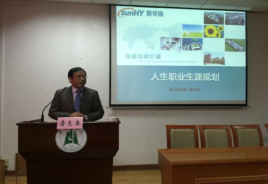 会议伊始,江正兵副经理向同学们简短的介绍了武汉新华扬生物集团公司规模及经营范围,并向在座同学们透露新华扬公司今后也会给在座一些同学们实习的机会这个好消息。随后,詹志春先生开始给同学们分享有关职业生涯的规划与定位的经验。詹先生开门见山地提出在座同学们很感兴趣的创业创新问题,他指出现在社会的一种新常态“全面创新,万众创新”,并提出了自己独到的见解。他说到,老员工在创业之前应该深思熟虑并要做好充足的准备,不要盲目的创业,并给大家分享了他在自己创业过程中所感所想,主要浓缩成了三个积累:经验的积累、人脉的积累和战略资本的积累。詹志春先生告诉同学们创业要有长远的眼光,要努力往技术创新、产品创新方向走,为人类作出贡献。同时詹先生对在座老员工讲到,人要有梦想,但在现实和梦想之间要做一个平衡,不仅要看到梦想成功的案例,更要关注那些失败的例子!他告诫同学们,作为员工,要积极参加公司活动,但精力分配要有度,要学好专业知识。