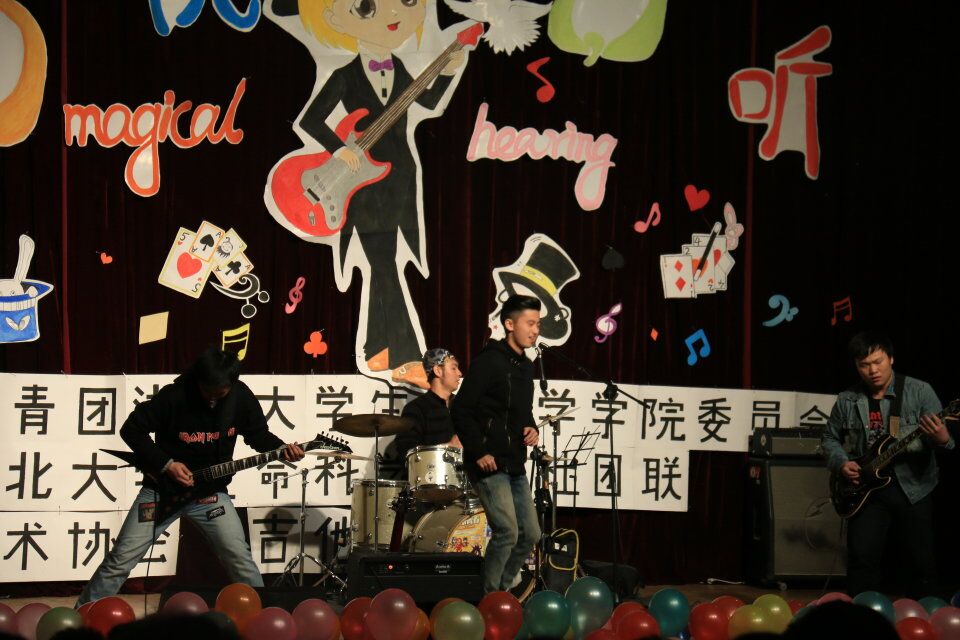 晚会在抑扬顿挫的吉他架子鼓合奏中拉开了序幕。劲爆的音乐霎时点燃了全场气氛。一曲《不再让你孤单》,让现场观众如痴如醉。主唱充满磁性的嗓音和着吉他轻缓动人的旋律,无疑给这个寒冷冬日带来了一份别样的温暖。随后扭脖子乐队带来的四首摇滚歌曲更是激情四射,激昂的热情展露了他们对音乐的钟爱。其后,热情洋溢的现场因充满“文艺范”的李倩而变得清新静谧。欣赏了音乐的盛宴后,更有健康俱乐部曼妙的舞蹈锦上添花。其后神秘的魔术相继上演,既有来自武汉理工大学紧凑的单人表演,也有近景投影,互动的心灵感应,奇幻玄妙的“魔术世界”赢得台下观众们的阵阵欢呼。伴着悠扬的民谣和纷繁杂乱的魔术展示,精彩纷呈的晚会落下了帷幕。