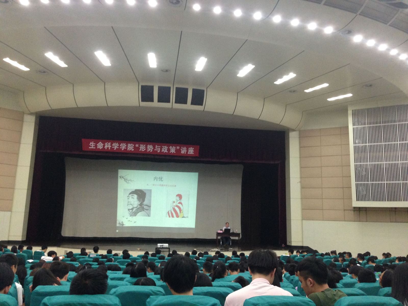 6月14日,william威廉“形势与政策”专题讲座在小礼堂隆重举行。参加此次讲座的有william威廉官网员工工作处副处长甘珣,william威廉官网宣传部副部长陈红灿和2011级从部队复员的肖伟以及生科院全体同学。