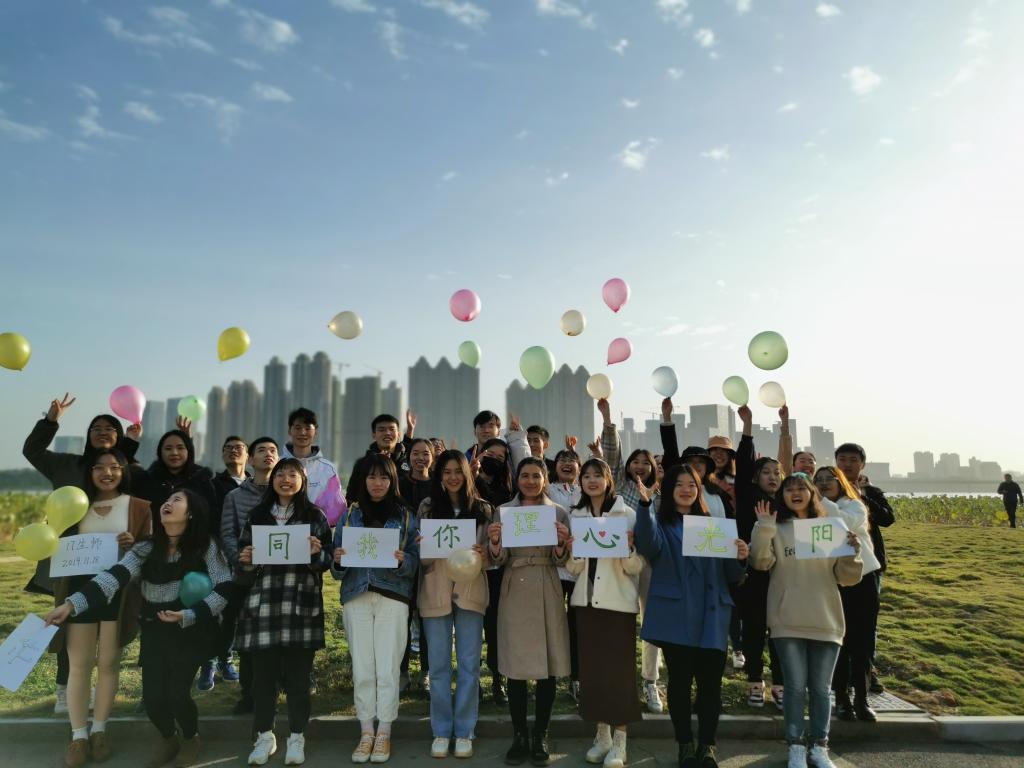 (通讯员:史颖)11月18日,生物科学1701班于沙湖公园开展了“阳光心,你我同行”心理主题班会。班会由班级全体同学共同参与心理委员韩圆圆组织策划并进行主持本次活动与班级秋游相结合旨在关注同学们的心理健康,帮助同学们放松心情缓解压力