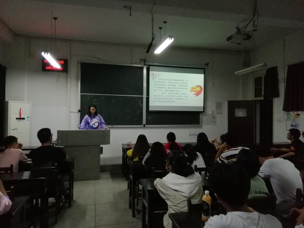 (通讯员:朱毅)1020日晚六点半,18级生物工程卓越班于教三606教室以“爱国爱校”为核心展开了庆祝中华人民共和国成立70周年的团日活动。为了传承和弘扬中华民族的优秀传统文化和不懈奋斗的革命精神,本次活动在庆祝祖国建立70周年和成为爱校湖大人两个方面开展。