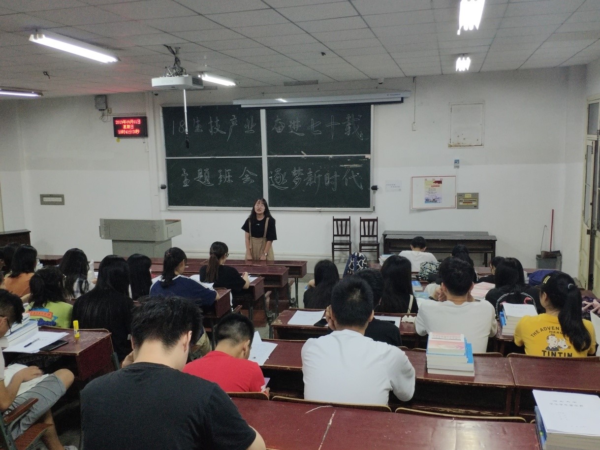 (通讯员:王小婷)91日晚,18生技产业班在教三-402开展了以“奋进七十载 逐梦新时代”为主题的新学期首次班会。