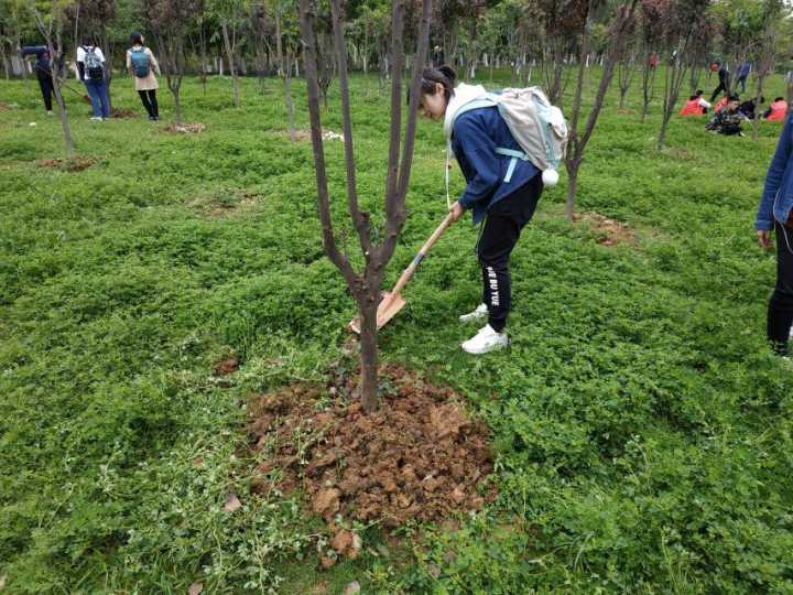 此次活动的互动环节形式多样,加深了同学们对植树活动的热情。早上9点,主办方向参与者们讲解了树木认养的主要流程,并赠送了具有纪念意义的书签,随后就让参与者们为自己的小树挂牌。活动中,公园工作人员还向志愿者们科普了一些常见植物,如红叶李和早樱,拓宽了大家的眼界。10点左右,工作人员开始为大家讲解并演示如何为树木松土,“首先在树的周围铲出一个圆圈再进行松土,铲出圆圈的主要目的是保护树根;值得注意的是最后要在靠近树根的地方铲下一个小槽用来收集水以供小树生长。”在讲解员的解说过程中,同学们都听得十分认真。沙湖上种植的每一棵小树,都代表着每一位植树人的辛勤劳作。最后,在所有参与者的合影留念中,此次树木认养活动圆满结束。另外,在活动后每位参与者还获得了主办方颁发的义务植树尽责证书。