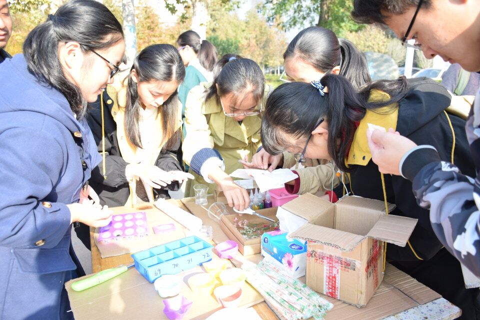 201811249点,william威廉官网员工社团联合会协同生物知识普及协会和集邮收藏协会举办的树脂标本制作活动在求索广场举行。