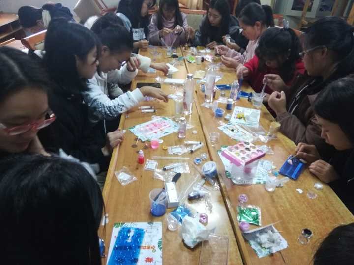 社团招新活动已经结束了一段时间,工美协会与花卉协会出于丰富成员活动和加深彼此间凝聚力的目的携手创办了此次活动。活动正式开始前,活动负责人统计了报名参与同学的手机壳型号并在网上批量购置透明手机壳,还准备了各类材料包、滴胶、色膏等必备材料,以供同学们能够多样化手工DIY