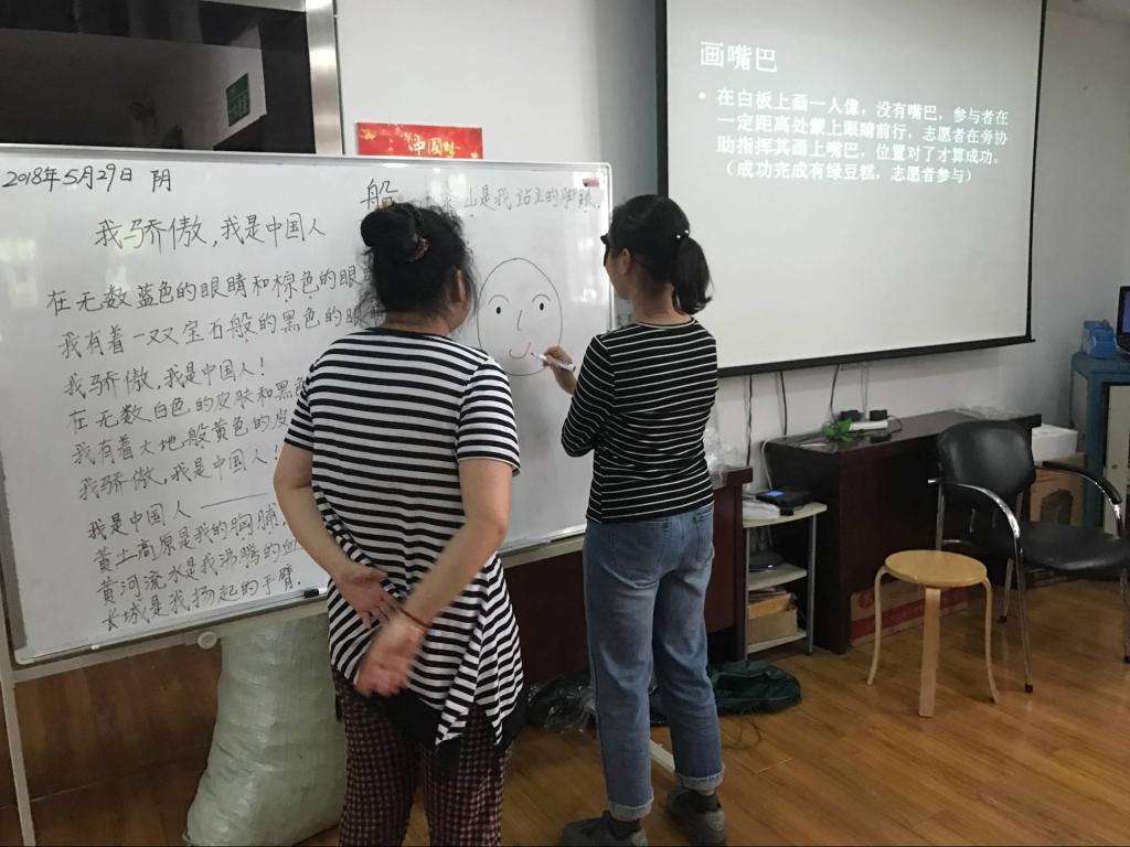 活动前期,生科院组织部在志愿者协会内部招募志愿者。530日,志愿者们来到愈合花园的社区。他们首先用PPT向学员们展示了此次活动的主要内容。接着,第一个游戏——“盲人吃香蕉”开始:两人对坐,然后将眼睛蒙上,靠感觉将香蕉送给对方吃,先吃完的获胜,胜利者可以获得果冻作为奖励。游戏环节中场休息时,大家一起观看了喜剧视频《功夫餐厅》。然后进行了第二个游戏——“画嘴巴”:在白板上画一人像,没有嘴巴,参与者在一定距离处蒙上眼睛前行,在搭档的协助下为人像画上嘴巴,位置对了就算成功,完成后有绿豆糕作为小奖励。活动结束后,大家的热情依然没有减退,志愿者和成员们度过了充实愉快的一天。(编辑:张星月 摄影:黄思环)