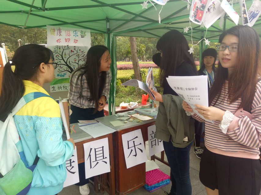 而此前,健康俱乐部早已做了充足的准备。在求索广场78号展点中,健康俱乐部为大家准备了踢毽子、体验指压板跳绳等娱乐项目。第一天早上招新宣传时,健康俱乐部迎来了外国员工的加入,员工们与外国员工一起踢毽子,这不仅是运动精神的交互,更是中外文化的交流。招新宣传活动也进行的十分顺利,不断有同学前来咨询并踊跃加入健康俱乐部。在第二天的招新活动中依然有许多同学前来咨询并参与小活动。生科院员工会主席也前来展点处参与了踢毽子活动,为健康俱乐部做了很好的宣传。更让人惊喜的是现场老师的加入。同时,健康俱乐部为参与小互动的员工们也准备了纪念荧光棒等小礼品。而生科院社团联则是为加入协会的成员准备了抽奖的活动。