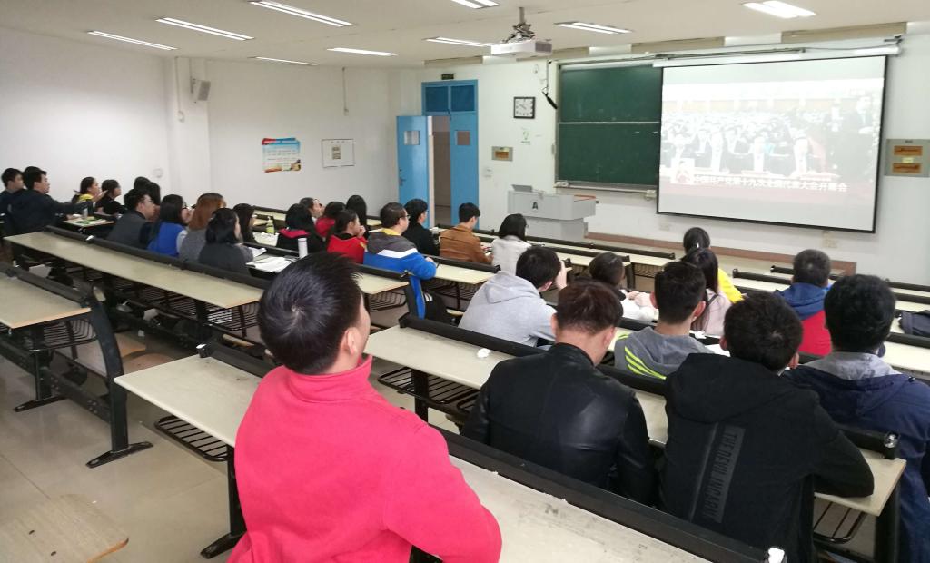中国共产党第十九次全国代表大会,于1018日上午9:00在北京人民大会堂开幕。在这一令人激动的时刻,15级生物技术产业班的团支书李俊希也积极组织班级内的39名员工,于当天上午930在四号教学楼504教室共同观看这一盛大开幕式的直播。