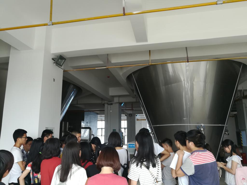 接着,工作人员又带着同学们去了各个车间,同学们见到了工厂中的发酵罐,连连惊呼与实验室的大不一样,工作人员耐心的为同学们讲解了操作原理,并介绍了各种膜过滤的知识,目标产物的生产流程,在了解了书本上的知识后,同学们在这一次的参观中,将知识掌握的更为深刻。