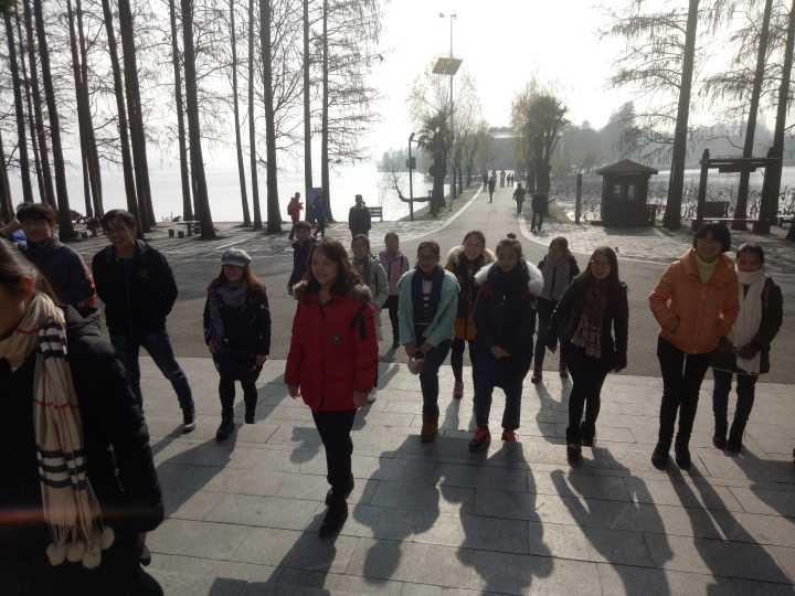 在元旦到来之际,15生技班班委组织了东湖冬游的活动。同学们早起集体乘车到达东湖,先观赏了东湖的风景,暖阳、绿树,水天相接,鱼游池中……,美丽的景色让同学们心情大好。行吟阁后的树林间有几张小桌子,同学们就地玩起了狼人、扑克、围棋等游戏,大家忽然发现平时文文静静的同学原来是游戏的个中高手。同学们玩游戏玩的不亦乐乎,忘记了时间忘记了饥饿,嘴上吃着不知是谁带来的零食,转身又投入新一轮的战斗。