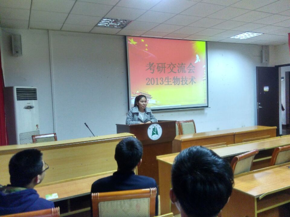 11月1日晚七点,生物技术班考研交流会在生科院二号报告厅顺利拉开帷幕。此次交流会由12级生物技术班优秀学子王军宝、李美欣主讲,旨在将12级直系学长学姐的成功考研保研经历分享给13级生物技术班的员工,增强13级员工对考研保研相关政策和信息的了解。
