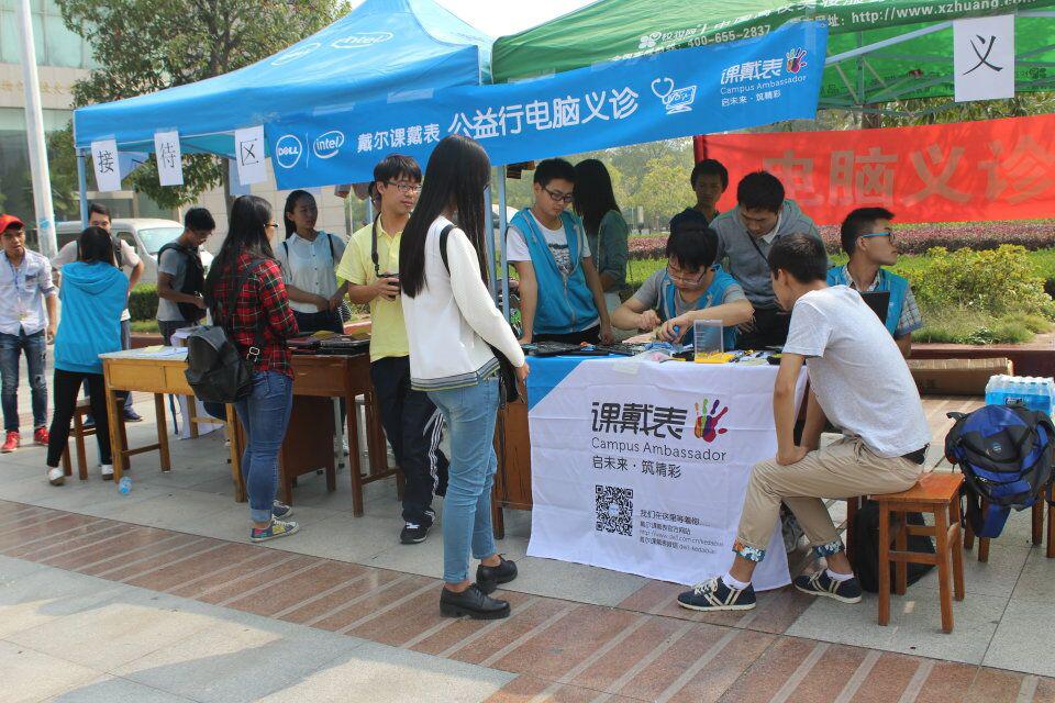 10月24日上午九点,公司志愿者协会与戴尔课戴表在图书馆门口举行了戴尔电脑义诊活动,免费为同学们提供电脑系统更新、安装,维修、清灰服务。