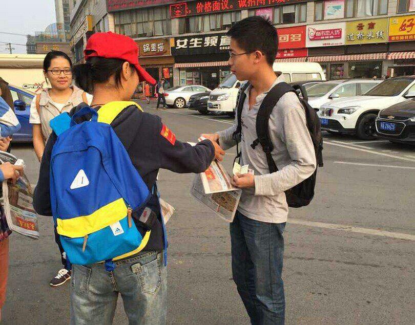 义务卖报,102名新生爱心领跑